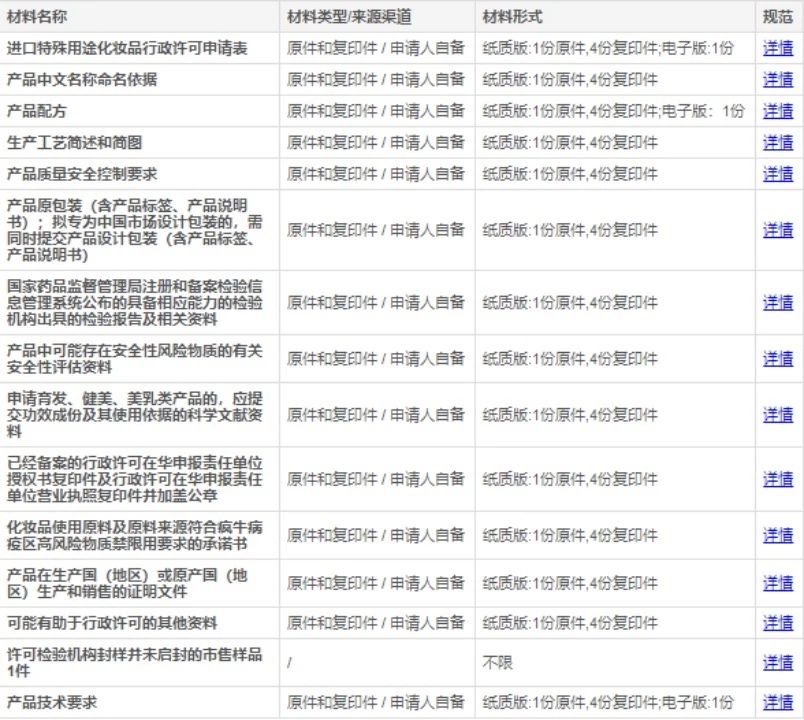 首次出口的化妝品必須提供以下文件: